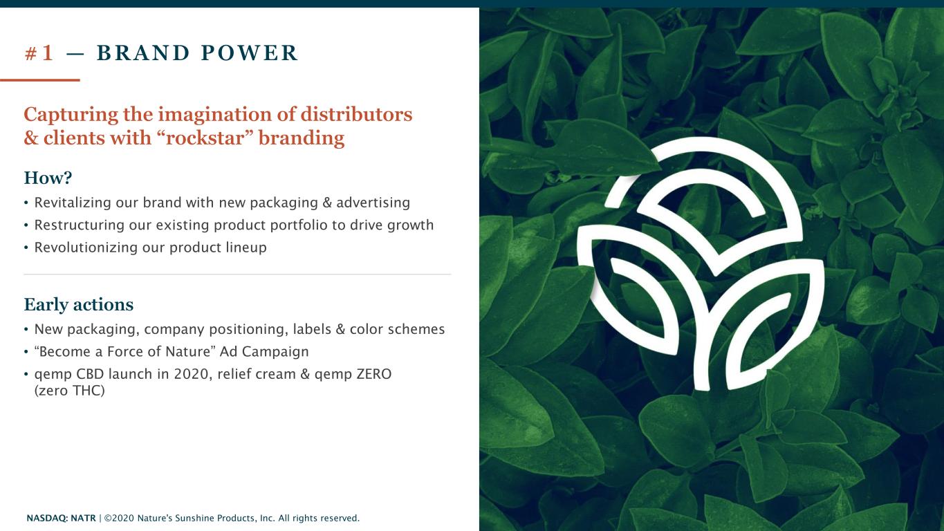 NASDAQ: NATR | ©2020 Nature's Sunshine Products, Inc. All rights reserved. 12 # 1 — B R A N D P O W E R Capturing the imagination of distributors & clients with “rockstar” branding How? • Revitalizing our brand with new packaging & advertising • Restructuring our existing product portfolio to drive growth • Revolutionizing our product lineup Early actions • New packaging, company positioning, labels & color schemes • “Become a Force of Nature” Ad Campaign • qemp CBD launch in 2020, relief cream & qemp ZERO (zero THC)